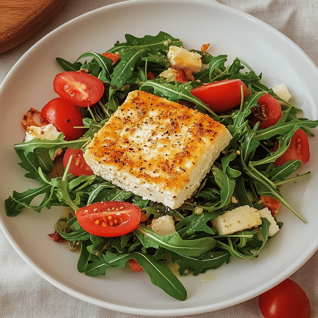 Gebackener Feta auf Rucolasalat ist ein einfaches, aber unglaublich leckeres Gericht, das perfekt für alle ist, die frische und herzhafte Salate lieben. Mit seiner Kombination aus cremigem Feta, würzigem Rucola und süßen Tomaten ist es ein Genuss, der sowohl einfach zuzubereiten als auch außergewöhnlich schmackhaft ist. Es eignet sich sowohl als leichte Mahlzeit als auch als köstliche Vorspeise und lässt sich wunderbar nach deinem eigenen Geschmack variieren. Lass dich von diesem Rezept inspirieren und teile deine Kreationen auf Instagram – wir sind gespannt, wie du es gestalten wirst!