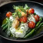 Gerösteter grüner Spargel mit Burrata und Tomaten ist nicht nur ein einfaches Gericht, es verkörpert die Essenz von frischem, saisonalem Kochen. Hier sind einige Gründe, warum du dieses Rezept lieben wirst: