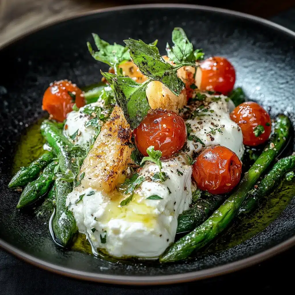 Gerösteter grüner Spargel mit Burrata und Tomaten: Ein Unglaubliches Ultimatives Rezept