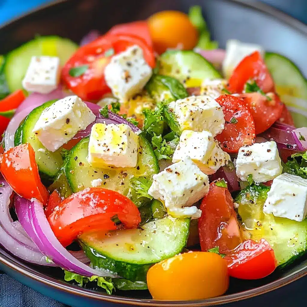 Der Griechische Bauernsalat ist ein beliebtes Gericht, das frisch, lecker und äußerst vielseitig ist. Mit seiner Kombination aus knackigem Gemüse, aromatischem Feta und einer köstlichen Vinaigrette ist er nicht nur ein Genuss für den Gaumen, sondern auch eine attraktive Farbenpalette für jeden Tisch. Egal, ob als Beilage oder Hauptgericht, er wird schnell zum Star jeder Mahlzeit!