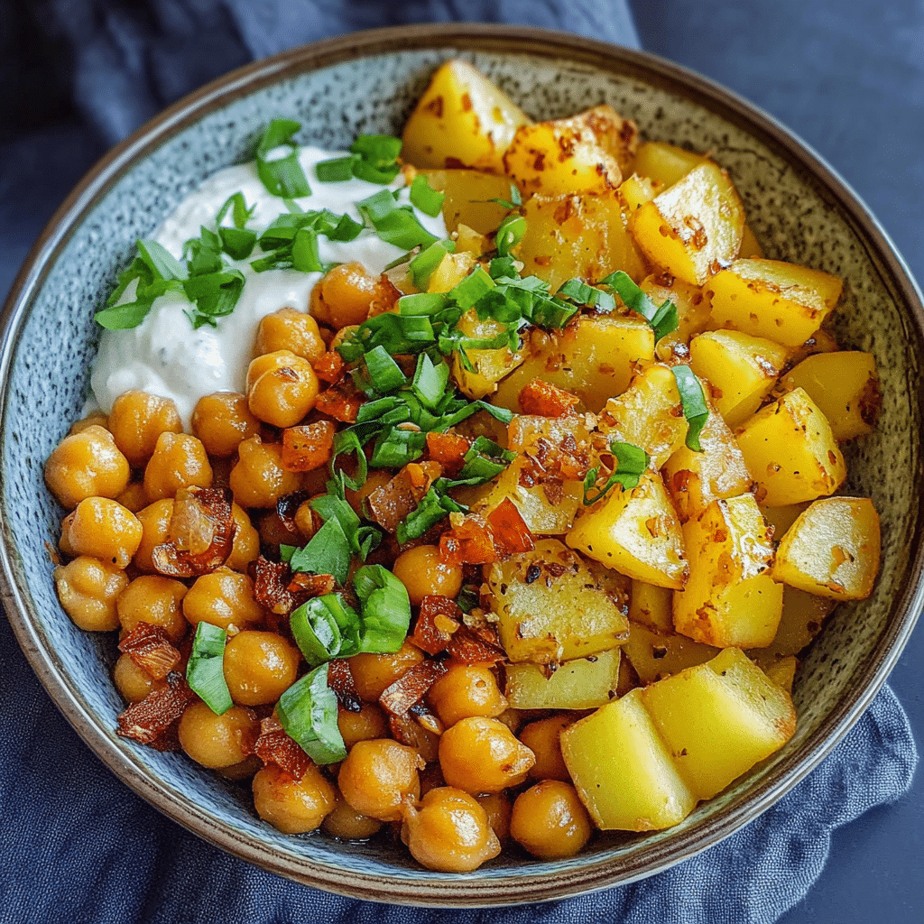 Die Kartoffel-Kichererbsen-Bowl ist ein köstliches und gesundes Gericht, das nicht nur durch seine Vielseitigkeit glänzt, sondern auch durch seine nahrhaften Zutaten. Die Kombination aus Kartoffeln und Kichererbsen sorgt für eine perfekte Balance aus Kohlenhydraten und Eiweiß, während du dich gleichzeitig an den frischen Aromen erfreuen kannst. Dieses Rezept lässt sich ganz nach deinem Geschmack anpassen, sei es durch zusätzliche Gewürze, Gemüse oder Toppings. Ob als schnelle Mahlzeit für den Feierabend oder als Meal Prep für die kommende Woche – du wirst garantiert nicht genug davon bekommen!