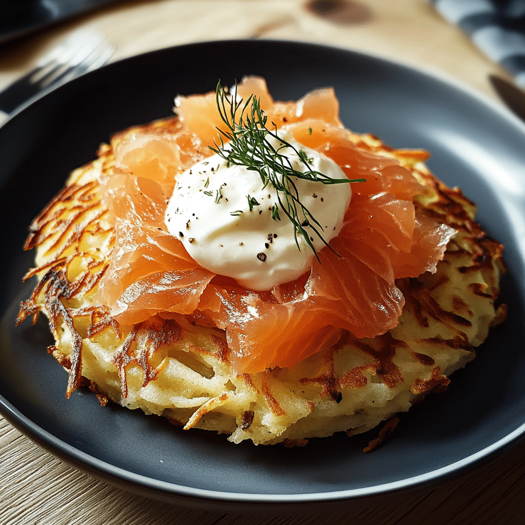 Was ich an diesem Gericht besonders liebe, ist die Kombination aus knusprigen Rösti und dem zarten, salzigen Geschmack des Räucherlachses. Der cremige Frischkäse rundet das Ganze ab und macht jede Gabel zu einem wahren Genuss. Es erinnert mich an die Wochenenden bei meiner Großmutter, die immer die besten Brunchgerichte zubereitet hat. Wir saßen am Tisch, lachten und genossen die Zeit – und diese Kartoffelrösti bringen genau diese Erinnerungen zurück.